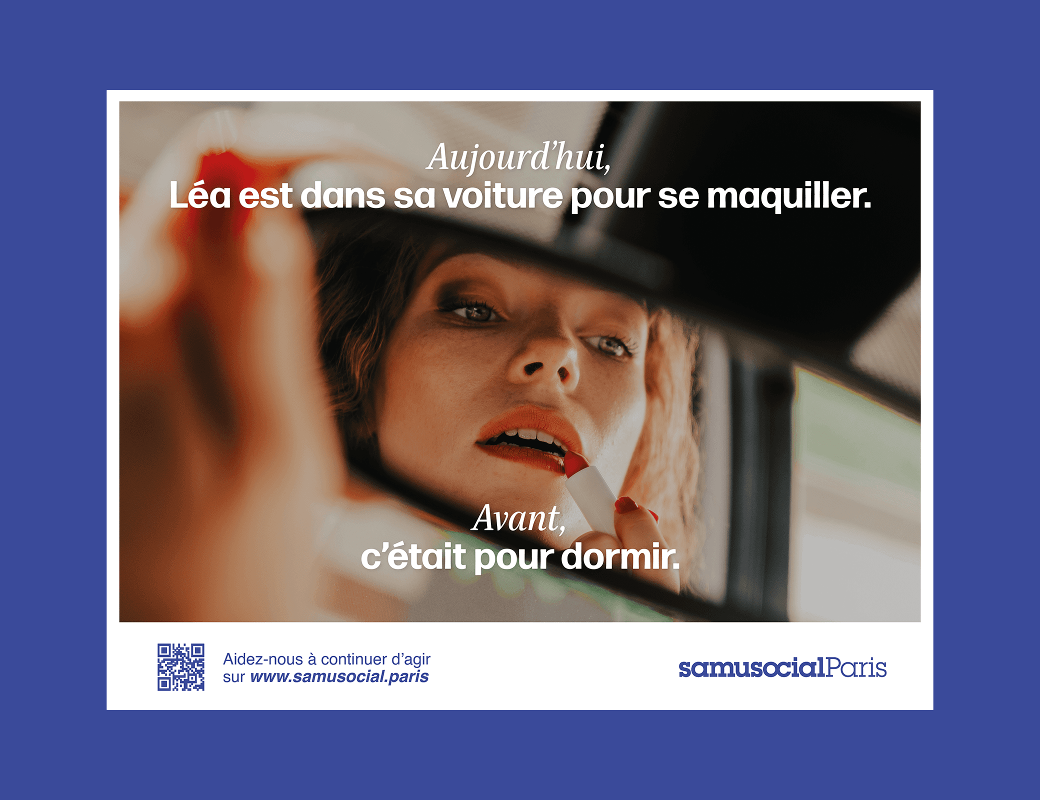 À travers cette série d’affiches, nous avons choisi de mettre en contraste le quotidien d’hier et celui d’aujourd’hui pour les personnes accompagnées par le Samusocial de Paris. Chaque visuel illustre un retour à la normalité, là où les gestes du quotidien – se maquiller, jouer, se détendre – étaient autrefois des actes de survie. La direction artistique mise sur des images lumineuses, chaleureuses et humaines, pour changer le regard sur la précarité et mettre en valeur les avancées concrètes permises par l’accompagnement social.