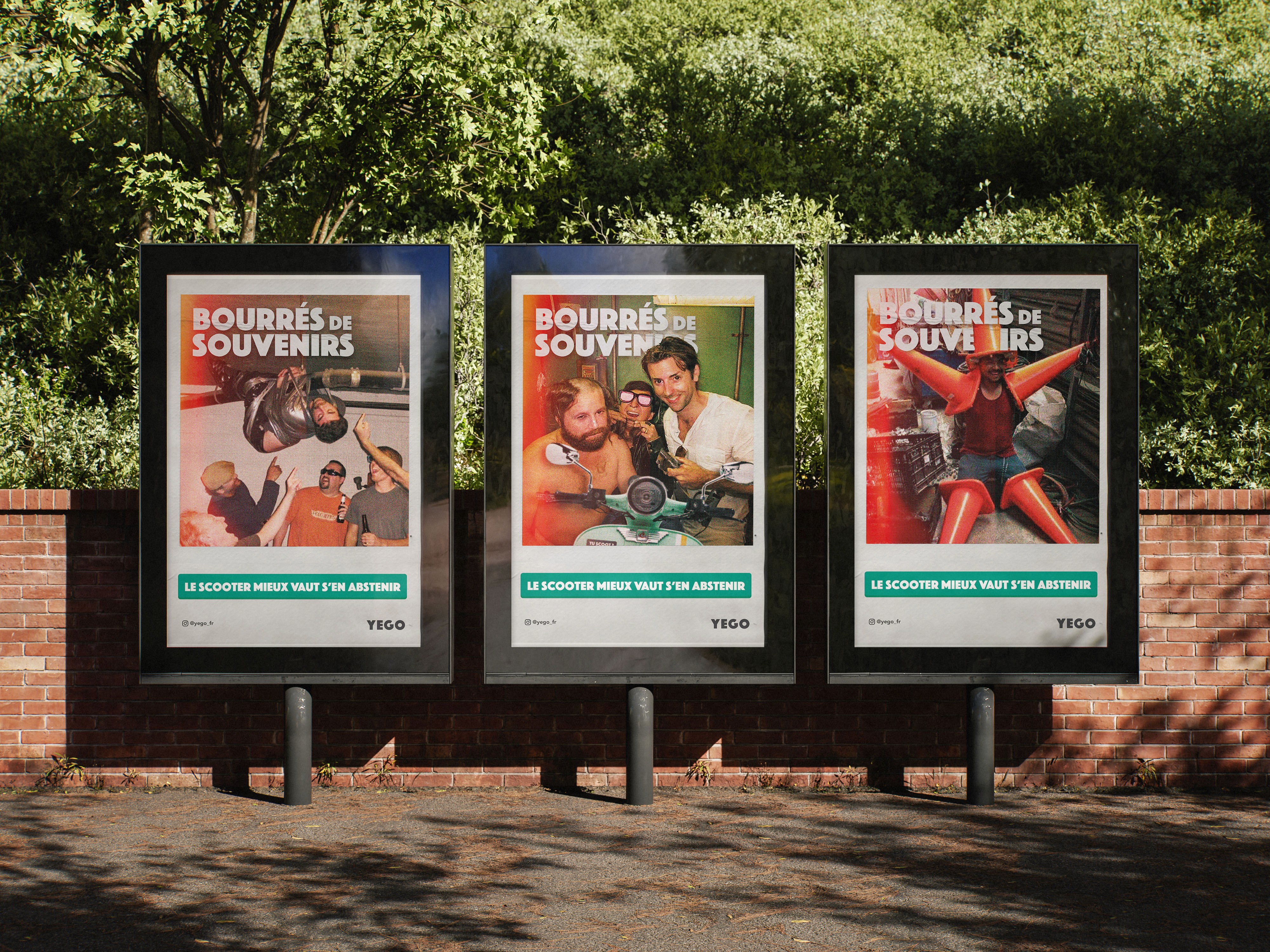 J’ai opté pour un style vintage en format polaroid, qui évoque les photos de soirées prises sur le vif, avec un flash brutal, des couleurs cramées, des visages transpirants de joie ou d’excès. Ce parti pris m’a aussi permis d’assumer la mauvaise qualité des images, en les inscrivant dans un registre nostalgique, brut et authentique. On y sent la spontanéité, la légèreté… tout ce qu’il faut préserver, sans y ajouter la prise de risques.Le message est clair : le scooter, mieux vaut s’en abstenir quand on a bu. Ces souvenirs suffisent largement.